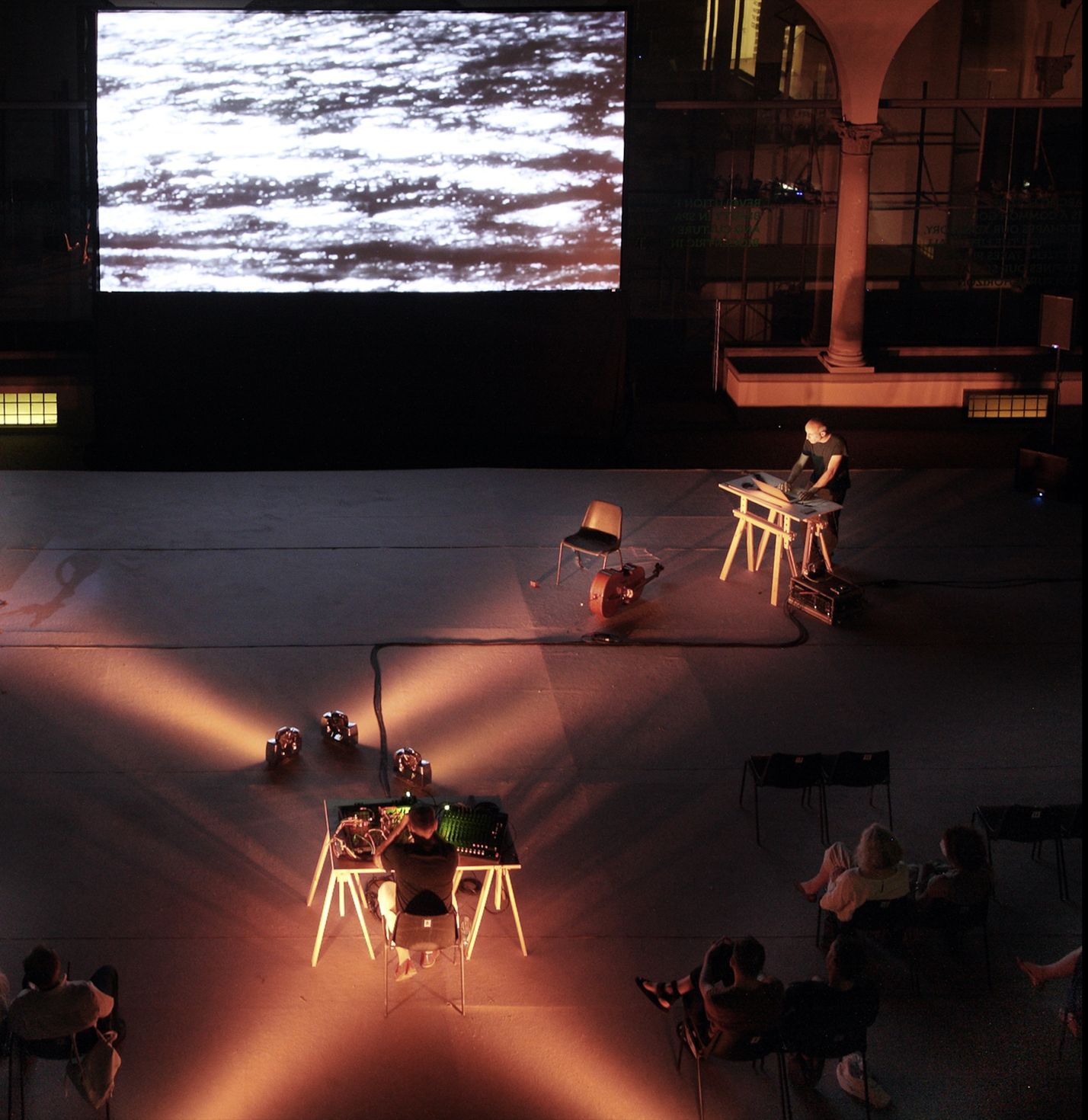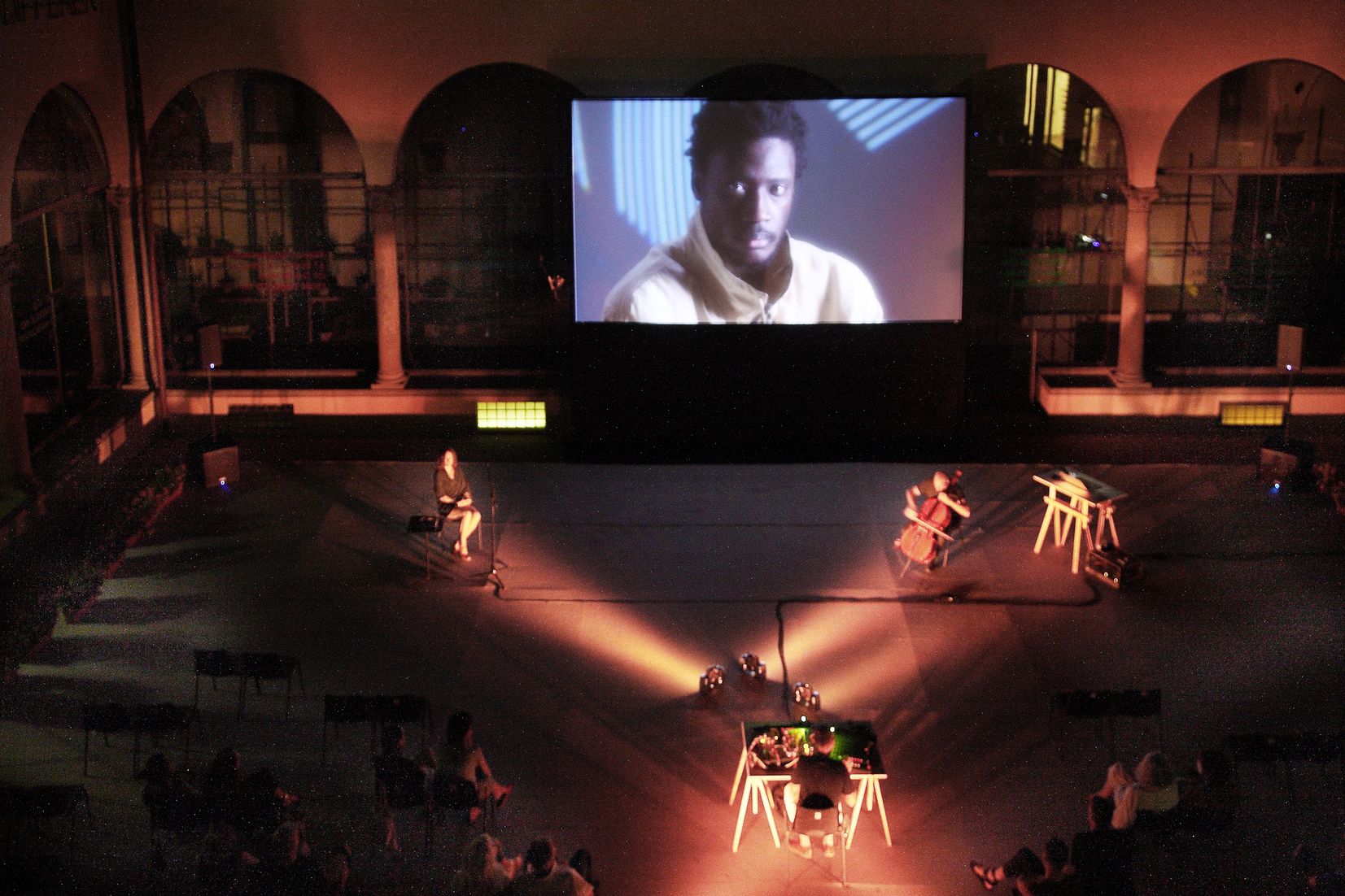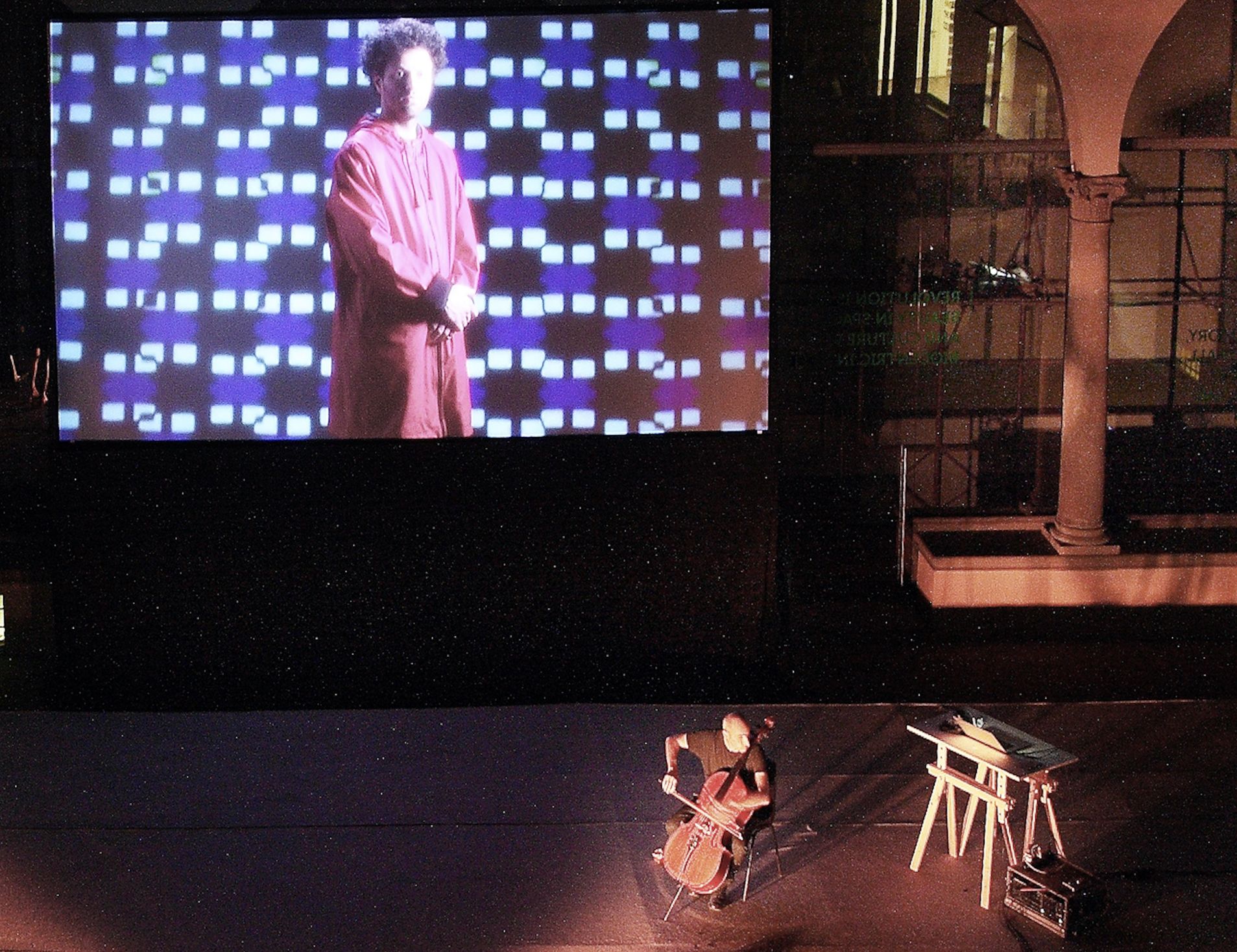 Atto Unico is a site-specific multimedia piece in two acts (Atto Unico Parte Prima and Atto Unico Parte Seconda) specifically designed for the cloister of the former Leopoldine, now the Contemporary Art Museum in Florence; Atto Unico is a stream of electro-acoustic sounds, images and voice.